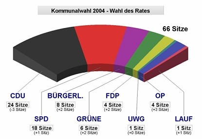 CDU: 39,2 % - SPD: 21,4 % - BüLi: 10,5 % - Grüne: 15,8 %