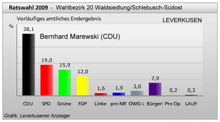 1. 61,6 % Wahlbeteiligung: K20 - Waldsiedlung/Schlebusch-Südost - B. Marewski CDU