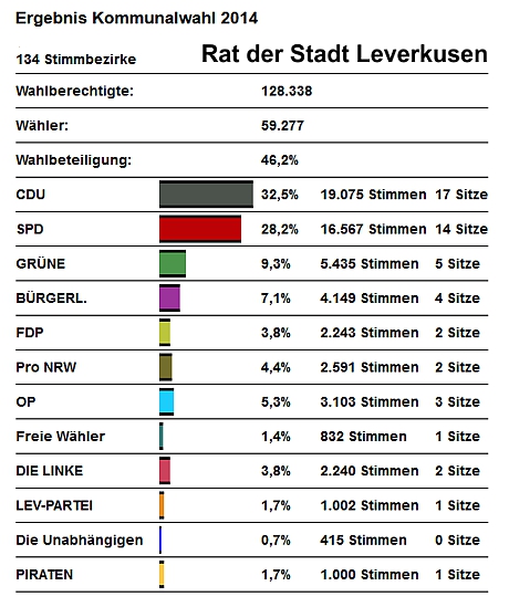 LEV-PARTEI: 2,3 % - proNRW: 1,8 % - PIRATEN: 1,5 %