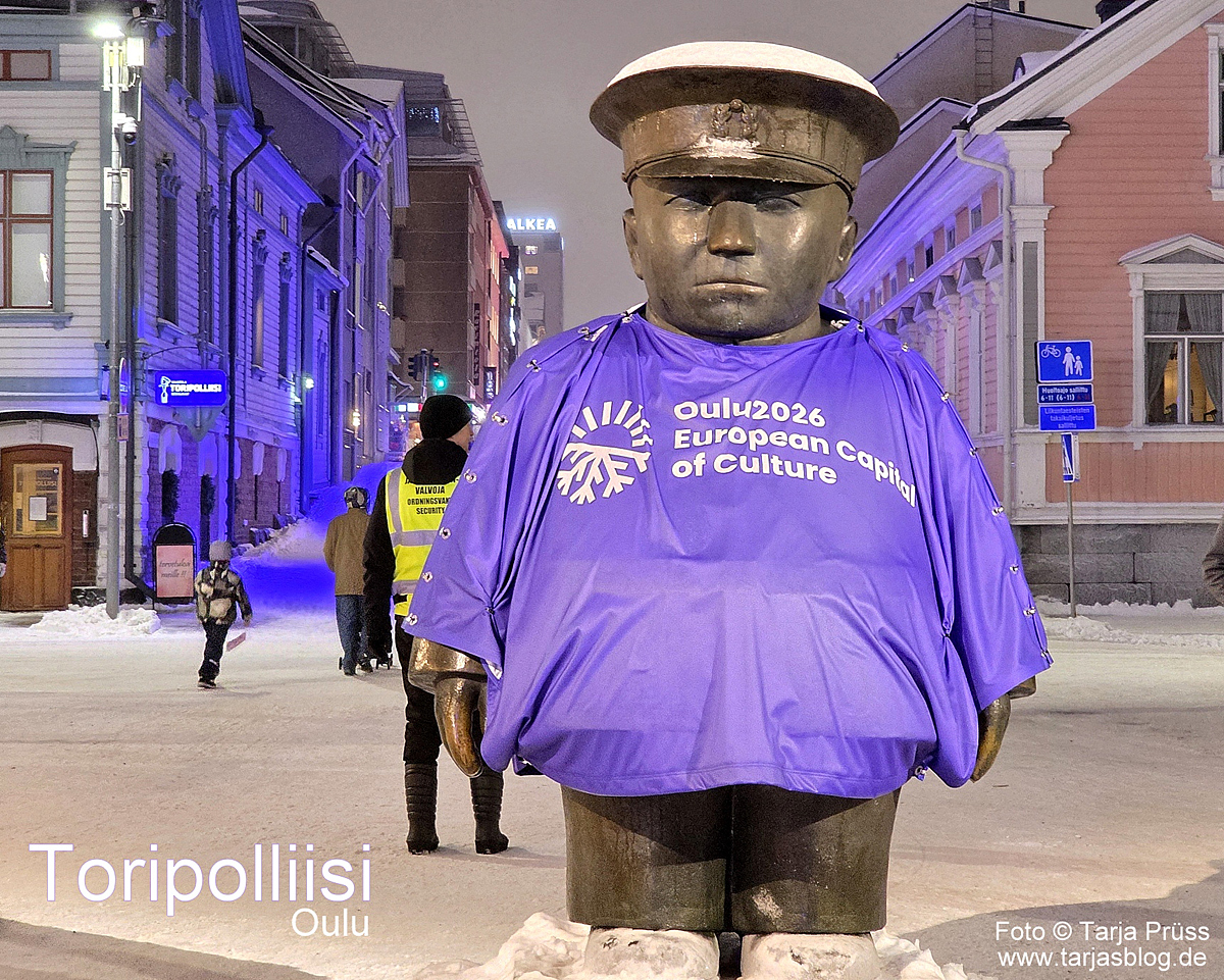 In Leverkusen, in Schlebusch an der Oulustraße in Höhe Lindenplatz, regelt seit dem 8. Mai 2019 an einer Fußgängerampel bildlich gesprochen der "Toripolliisi", der Marktpolizist aus Leverkusens Partnerstadt Oulu, den Verkehr. An dieser Fußgängerampel zeigt seither ein Ampelmännchen in Form des "Toripolliisi" an, wann Fußgänger die Straße überqueren dürfen. Die Bezirksvertretung für den Stadtbezirk III hatte in ihrer Sitzung vom 7. Februar 2019 entschieden, die Fußgängerampel an dieser Stelle dauerhaft mit einem Ampelmännchen auszurüsten, das den Ouluer Marktpolizisten darstellt. Dadurch soll die Wertschätzung der mittlerweile über 50 Jahre bestehenden Städtepartnerschaft zwischen Leverkusen und Oulu (1968 - 2018) zum Ausdruck gebracht werden. Der "Toripolliisi" ist eine 2,20 m hohe Bronzestatue auf dem Marktplatz der nordfinnischen Stadt Oulu, bekannt als "Hauptstadt" Nordskandinaviens, und gilt als eines der Wahrzeichen der Stadt. Die Statue wurde von Kaarlo Mikkonen (1920 - 2001) entworfen und 1987 auf dem Marktplatz vor der Markthalle in Oulu errichtet. Sie ist Schutzpolizisten gewidmet, die auf diesem Marktplatz für Ordnung und Ruhe sorgten und dank ihrer ausgleichenden Art von den Händlern sehr geschätzt wurden.
