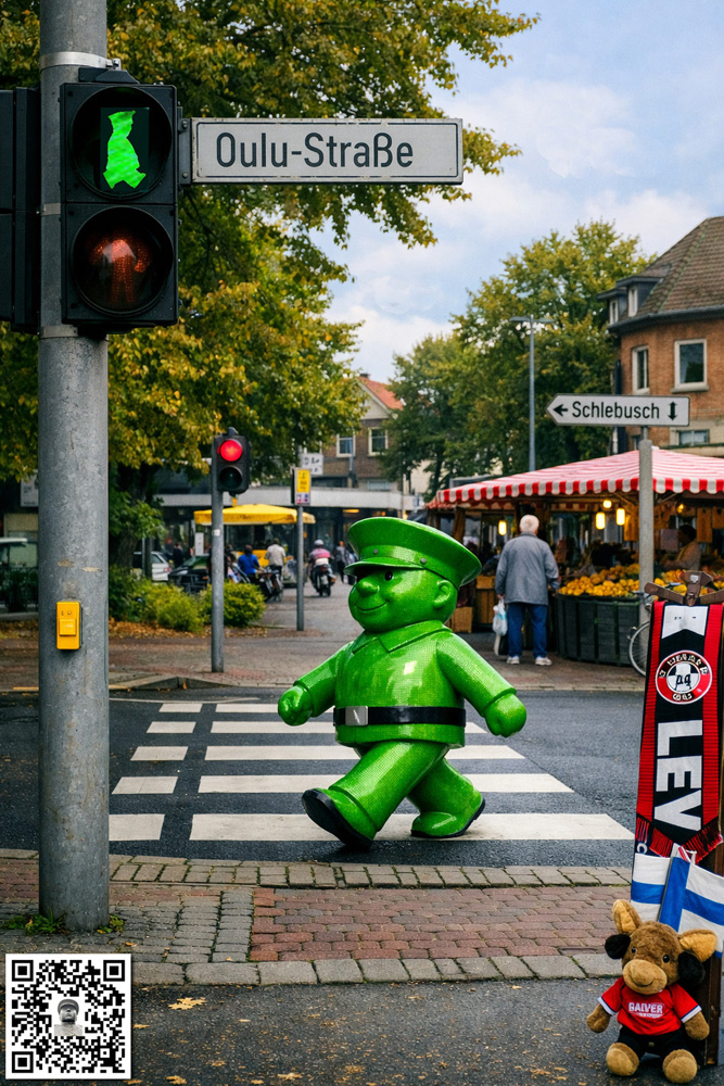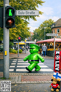 Leverkusen Schlebusch Das Ampelmännchen an der Oulustraße The Traffic Light Man on Oulu Road | Liikennevalomies Oulunkadulla TORIPOLLIISI OULU » Marktpolizist aus Oulu « |